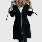This transitional coat is a masterpiece of design and practicality. With its tailored silhouette and refined details such as the drawstring at the waist, which allows for a customised fit, and the checked lining in the hood and sleeve ends that adds an unexpected style accent, it offers a perfect balance between chic and comfort. The practical pockets and concealed zip make this coat an essential piece for everyday wear.