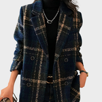 Step out in style with this timeless double-breasted checked wool coat. Crafted from premium wool, it offers both warmth and sophistication. Perfect for layering over your favourite outfits, this coat brings a touch of elegance to your winter wardrobe while keeping you cozy on the coldest days.