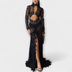 Azalea - Midnight Elegance Transparent Cutout Long Sleeve Stretch Maxi Dress
