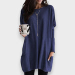 Enjoy ultimate comfort with this casual tunic dress. The soft, flowing cut drapes beautifully around the figure and provides a relaxed feel. With the casual, inserted side pockets, it's perfect for discreetly storing small items or keeping your hands warm. The wide round neckline and long sleeves make the dress ideal for chilly days. Perfect for a cosy everyday look.