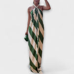 Marlowe - Striped Pattern Halter Backless Maxi Dress