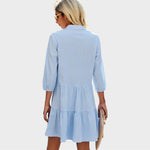 This light shirt dress is perfect for a relaxed yet stylish appearance. With its loose fit, button placket running the entire length, and lightweight fabric, it ensures comfort and freedom of movement. Ideal for strolls, city outings, or casual summer parties – a true must-have for any wardrobe.
