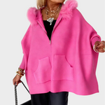 Add a playful touch to your casual wardrobe with this stylish hooded zip-up jacket. Featuring a cosy oversized fit, plush detailing around the hood, and large front pockets, this piece effortlessly combines comfort with fashion. Perfect for layering over your everyday outfits, this jacket is designed to keep you warm without sacrificing style.