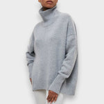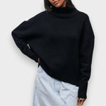This ultra-comfortable oversized sweater is the perfect balance between casual and stylish. Designed with a cosy turtleneck and a relaxed fit, it offers exceptional warmth and a contemporary silhouette. The luxurious fabric feels soft against the skin, while the ribbed detailing at the neck, cuffs, and hem adds structure and elegance. Ideal for layering over jeans, skirts, or trousers, this sweater is a versatile wardrobe essential for any season.