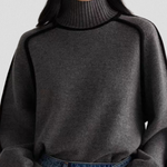 This roll-neck jumper combines comfort and style in a unique way. The eye-catching contrast seams along the sleeves and shoulders give it a modern and distinctive touch that sets it apart from ordinary knitwear. It is the perfect garment to add an elegant yet casual flair to your look in no time.