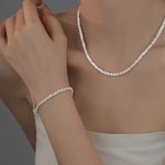 This sleek 2-piece set features a fine shimmer-effect chain necklace with a matching bracelet, both designed with a subtle sparkle finish. The delicate lines and soft curves hug the skin gracefully, creating a clean, sophisticated look that’s ideal for daily wear or elegant layering with other pieces.