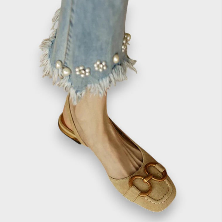 These shoes combine elegance with everyday practicality. The chic design with decorative details makes them a real eye-catcher, while the flat heel and comfortable material ensure maximum comfort. Ideal for the office, city strolls, or a relaxed evening out.
