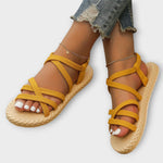 The yellow strappy sandal is the perfect companion for sunny days! With its criss-cross textile strap design and woven jute sole, it radiates a laid-back summer vibe. The soft and flexible sole ensures high comfort – whether you're out in the city, at the beach, or having a barbecue with friends.