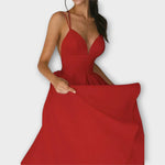 The Ailana deep V-neck dress for women embodies sophistication and style. With its seductive V-neckline and flattering silhouette, it is ideal for special occasions or elegant evenings.