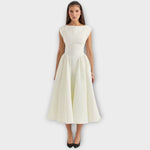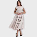 • Feminine, fitted cut with a flowing midi skirt for an elegant line
