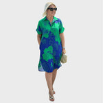 The dress combines its loose, airy design with a vibrant, modern pattern – perfect for showcasing freshness and style. Ideal for sunny days or cosy evenings, it offers comfort and freedom of movement without sacrificing elegance.