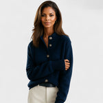 This cardigan redefines understated luxury. Expertly crafted from a sumptuously soft knit, it delivers impeccable comfort while maintaining a polished, modern silhouette. The oversized buttons and clean lines create a look that’s both relaxed and refined — perfect for the boardroom, the café, or a weekend away. It’s not just a layer; it’s a statement of quiet confidence.