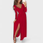 Discover our long-sleeved dress with a deep V-neckline! This dress perfectly combines style and allure. The sophisticated open back and delicate cut-out details give it a modern, feminine touch that draws all eyes to you.