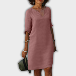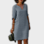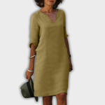 The Lyns dress with V-neck embodies simple elegance and feminine lightness. With its relaxed fit and stylish design, it effortlessly adapts to any occasion – whether for a city stroll, at the office, or dining outdoors. A true favourite for women who appreciate comfort and style.