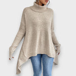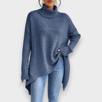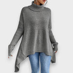 This soft women's sweater captivates with its relaxed design and high collar, providing warmth and an elegant silhouette. The asymmetrical shape adds a unique touch to the look, while the fine knit structure guarantees maximum comfort. Perfect for cosy days at home or stylish appearances in everyday life.