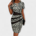 Define your silhouette with this eye-catching leopard print dress, where modern design meets a feminine keyhole neckline.